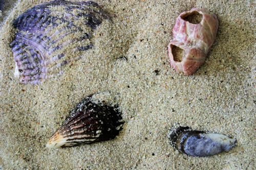 The most common component of sand is mineral grains. Shown below are some of the most common. The link under the image will take you to a great visual database giving you all of the characteristics of the mineral. Clicking on the image will take you to the page describing the sand site. Note: Minerals in sand have been abraded to some degree, do not expect the crystal shape to be a perfect match with what is shown in the database!