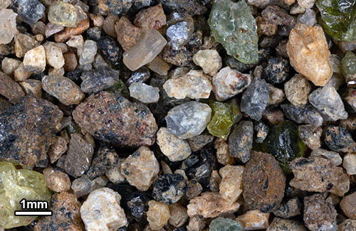 Sample collected from sand bar in mountain stream. |